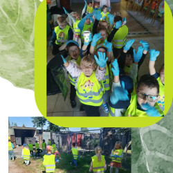 wraz z wychowawcami wzięły udział w akcji sprzątania terenu w pobliżu naszego przedszkola pt. " W naturę z kulturą". Celem działania było kształtowanie u dzieci nawyku dbania o środowisko, rozwijanie wrażliwości ekologicznej oraz uczenie odpowiedzialności za wspólną przestrzeń. Dzieci z zaangażowaniem zbierały śmieci wokół przedszkola. Akcja zakończyła się rozmową podsumowującą, podczas której dzieci dzieliły się swoimi spostrzeżeniami i uwagami na temat dbania o przyrodę. Wychowawcy