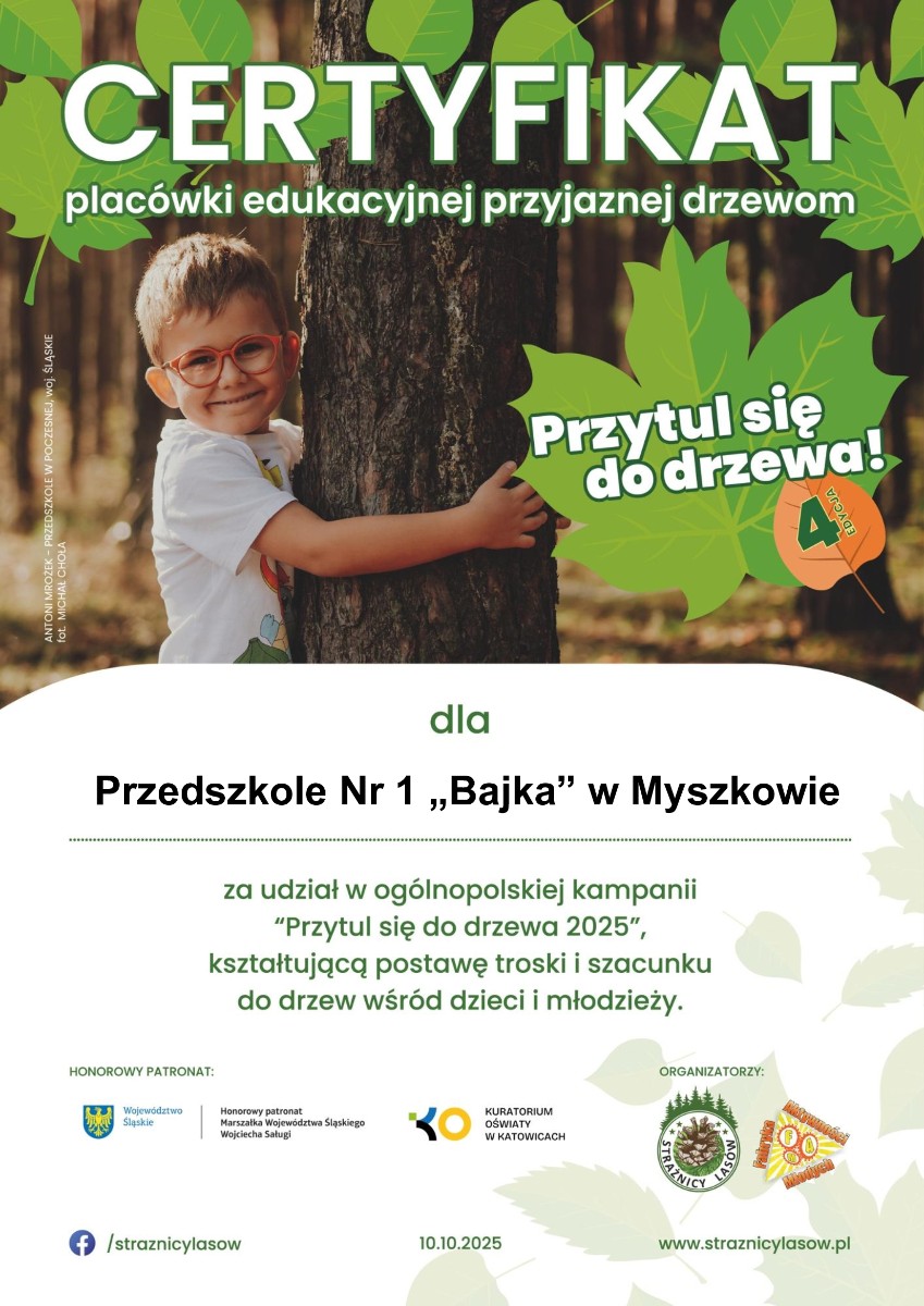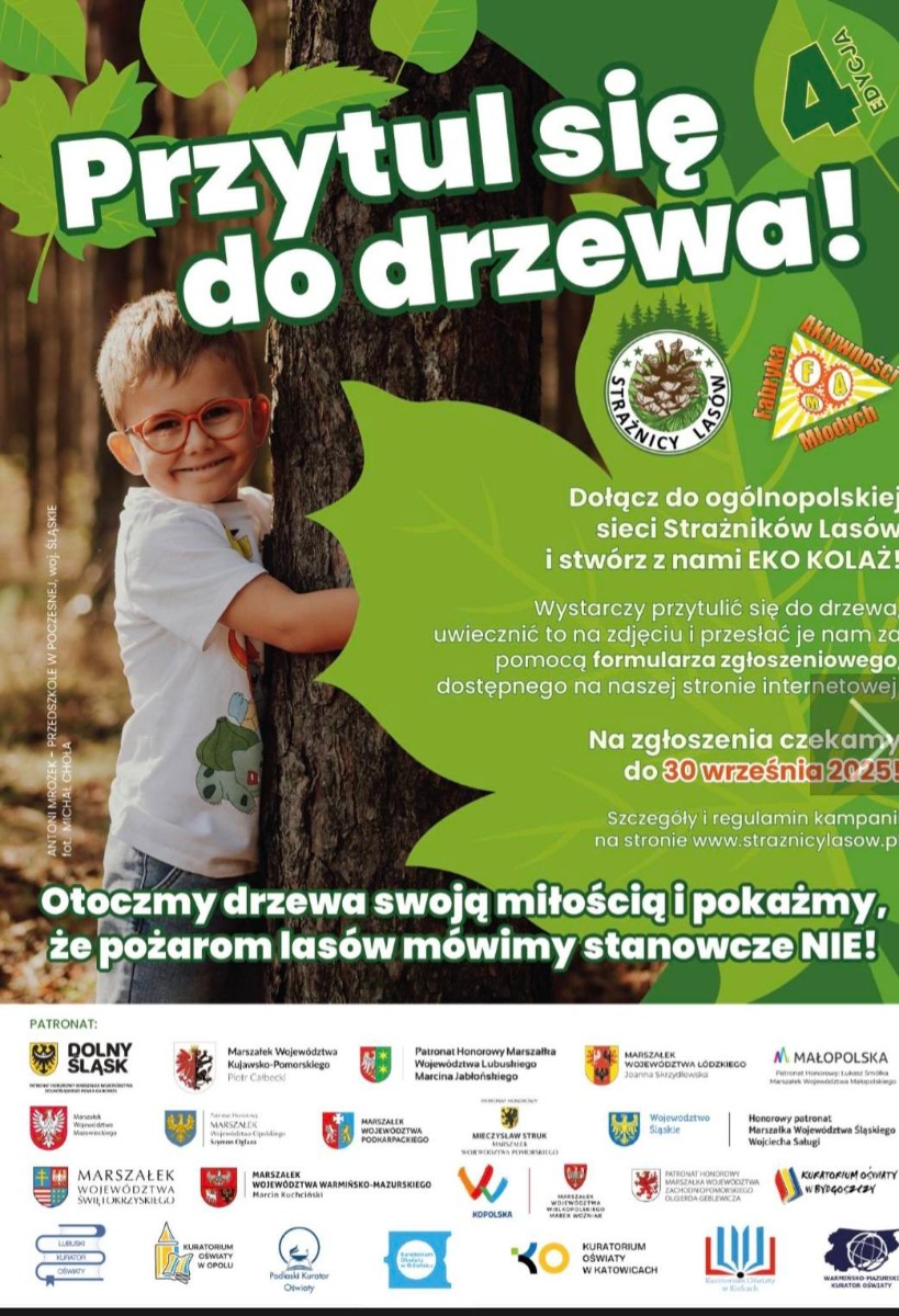Nasze przedszkole dołączyło do 4. edycji ogólnopolskiej kampanii „Przytul się do drzewa”, realizowanej w ramach projektu Strażnicy Lasów!
