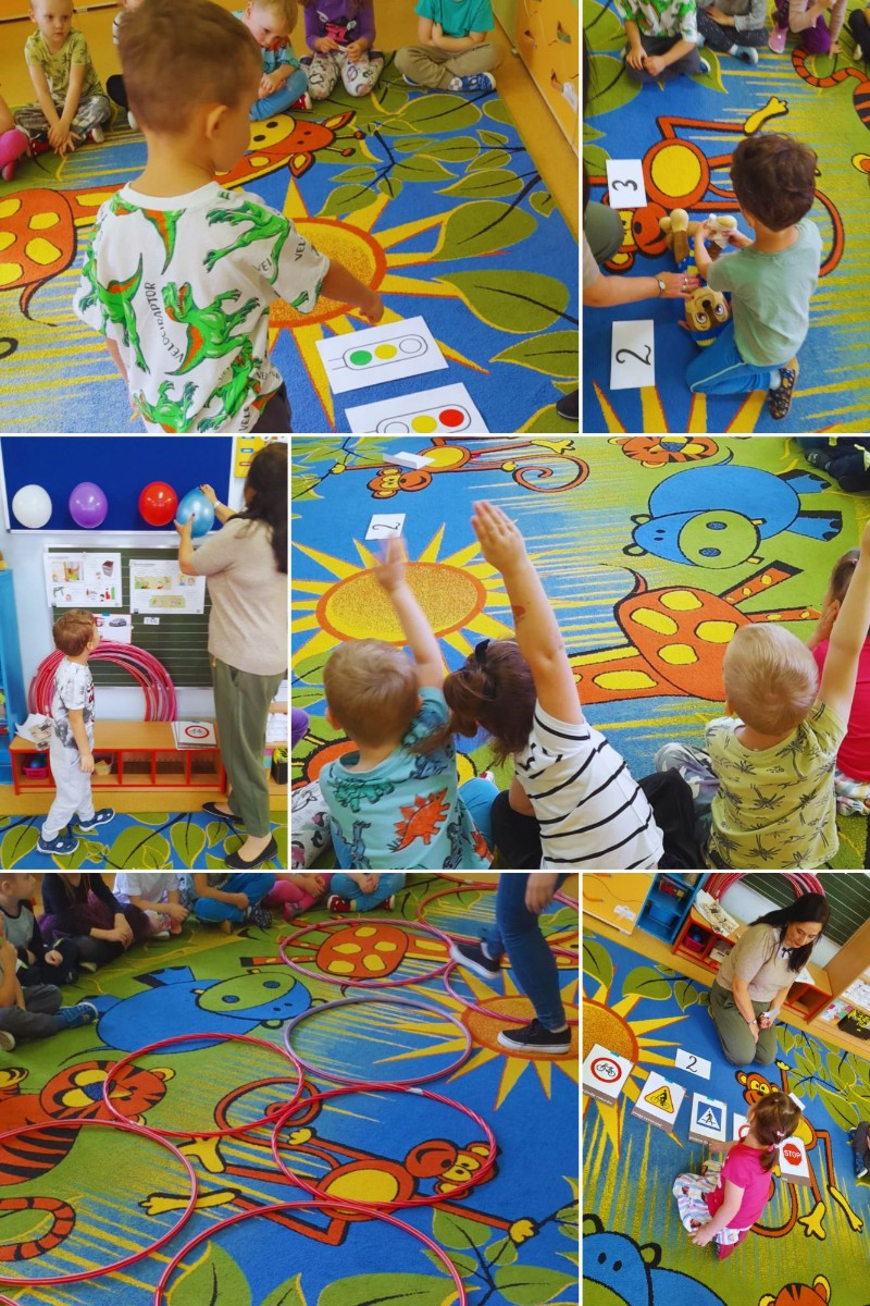 Zajęcie miało na celu przypomnienie dzieciom, jak ważne jest bezpieczeństwo – zarówno na drodze, jak i w codziennych sytuacjach. Podczas zajęć przedszkolaki uczyły się, jak bezpiecznie poruszać się po drodze i przechodzić przez jezdnię, a także jaką rolę pełni sygnalizacja świetlna. Przypomnieliśmy numery alarmowe oraz omówiliśmy, w jakich sytuacjach należy z nich korzystać.