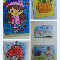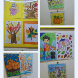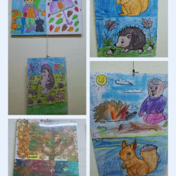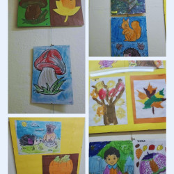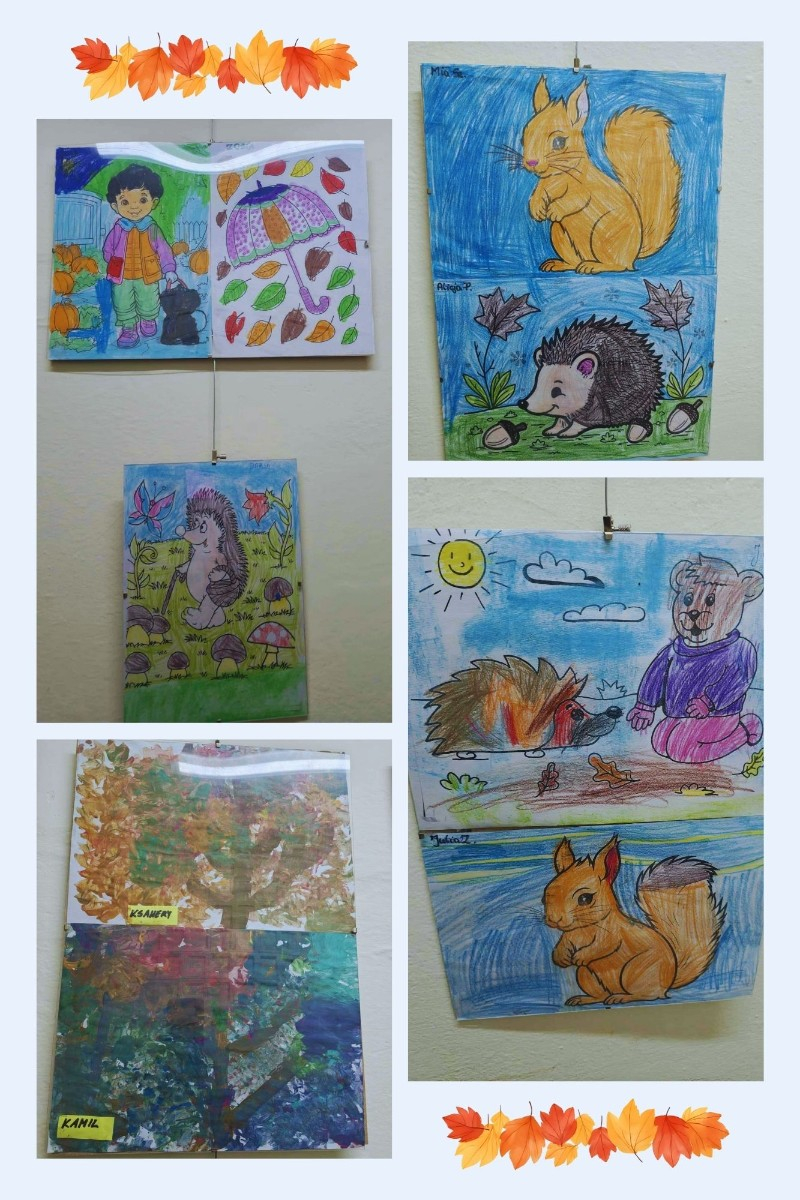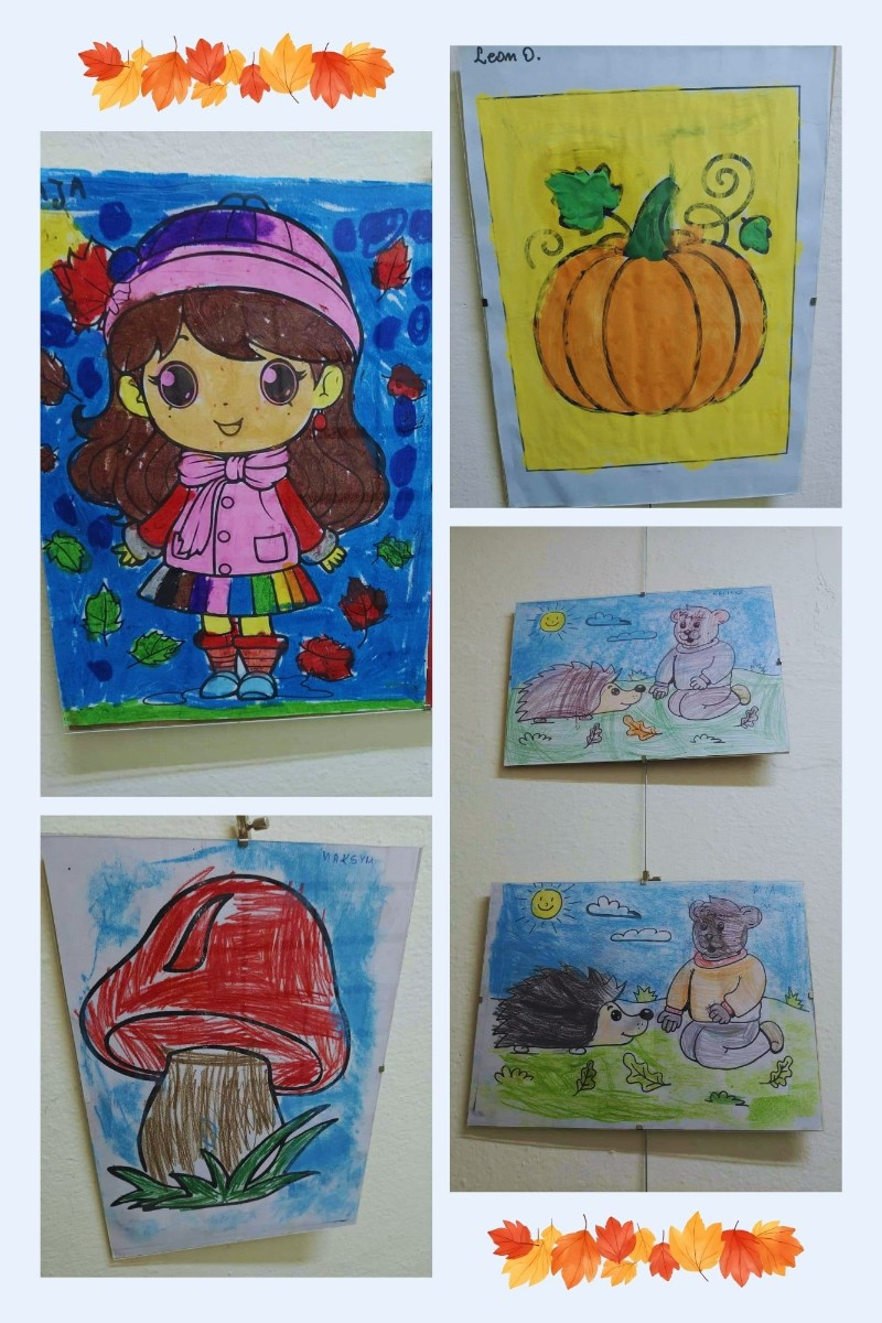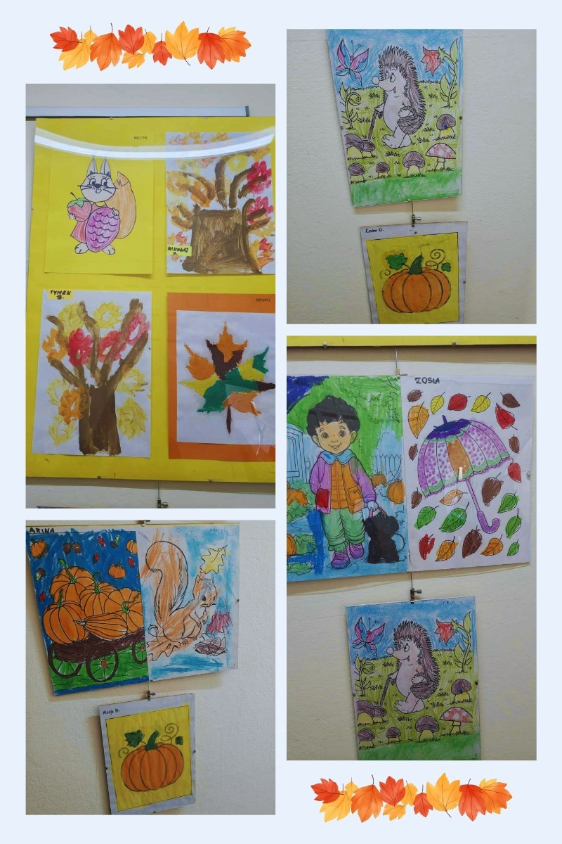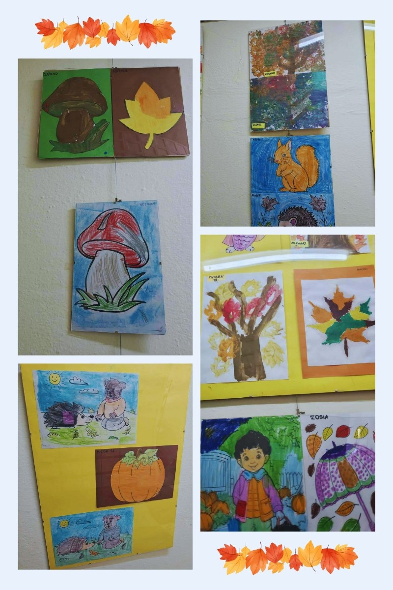 W ramach współpracy przedszkolaki wykonują prace plastyczne. Obecnie hol biblioteczny zdobią prace o tematyce jesiennej. Wśród prac dominują ciepłe barwy oraz motywy związane z aktualną porą roku. Na wystawie można podziwiać kolorowe liście, grzyby, dynie, jesienne pejzaże oraz różnorodne kompozycje. Zapraszamy do obejrzenia prac! :)
