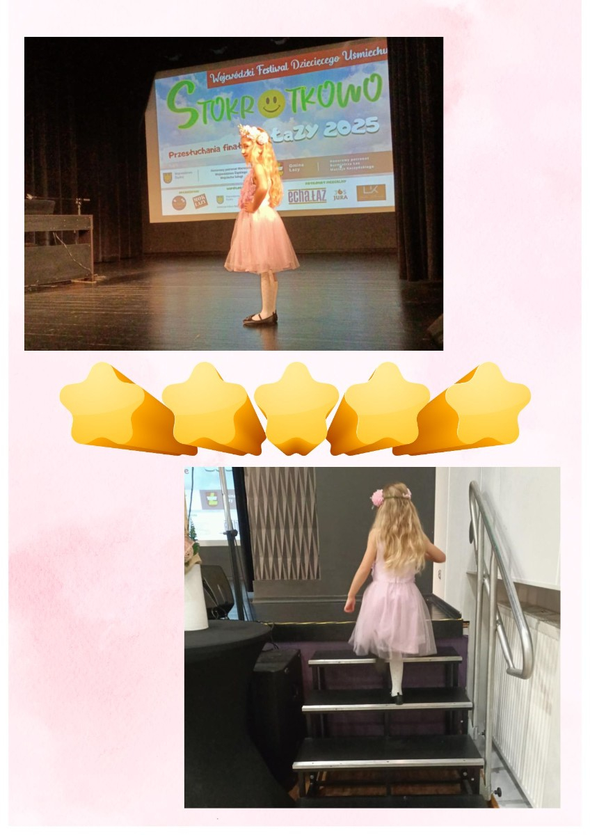 zajęła III MIEJSCE w Wojewódzkim Konkursie Piosenki Dziecięcego Uśmiechu „Stokrotkowo”- Łazy 2025.