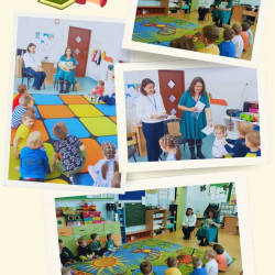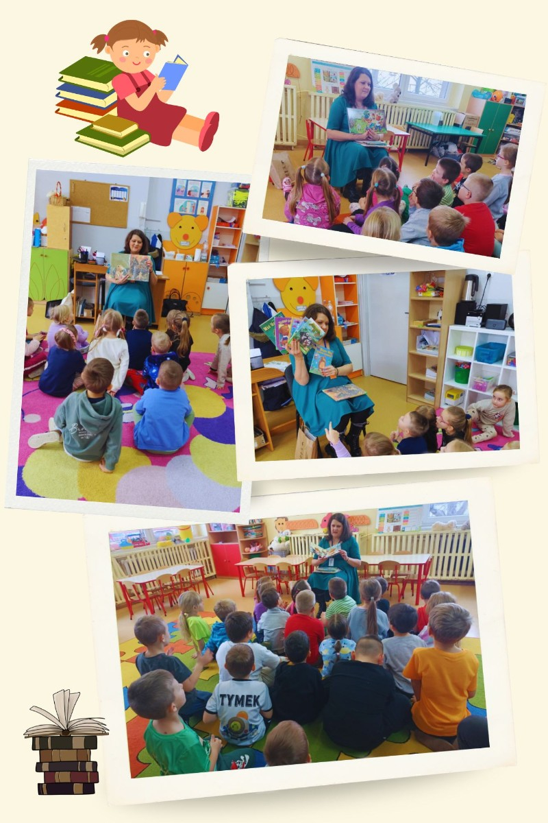Dzieci z grup: "Jabłuszka", "Słoneczka", "Jagódki" i "Stokrotki" współpracują z Miejską i Powiatową Biblioteką Publiczną w Myszkowie.