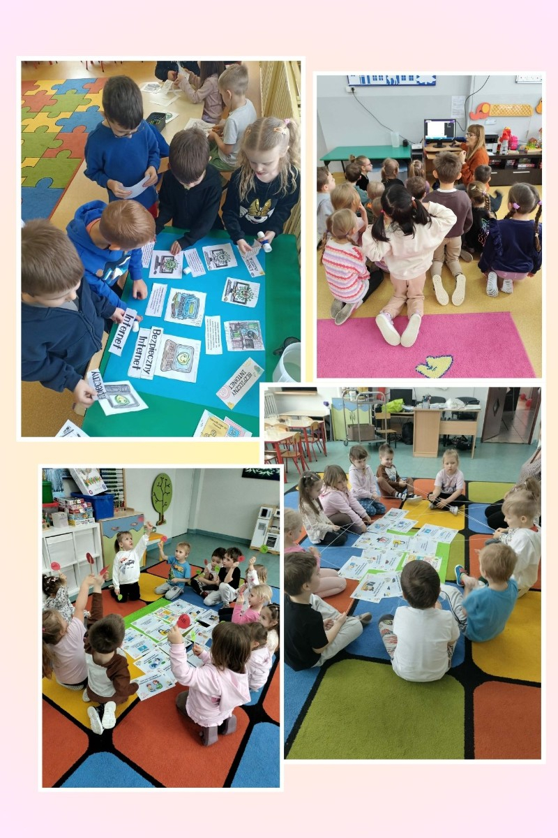 Podczas zajęć dzieci rozmawiały o tym, czym jest Internet i do czego może służyć, a także poznały zasady bezpiecznego korzystania z komputera, tabletu i telefonu. Przedszkolaki dowiedziały się, że w Internecie należy zachować ostrożność, nie podawać danych osobowych oraz zawsze prosić o pomoc dorosłych w przypadku niepokojących treści.