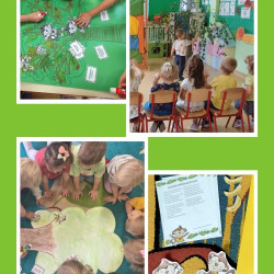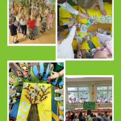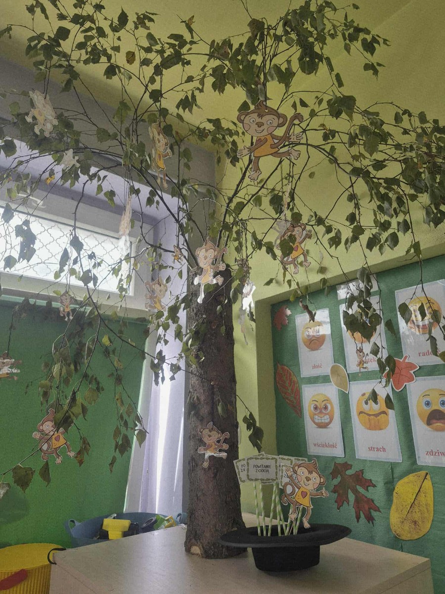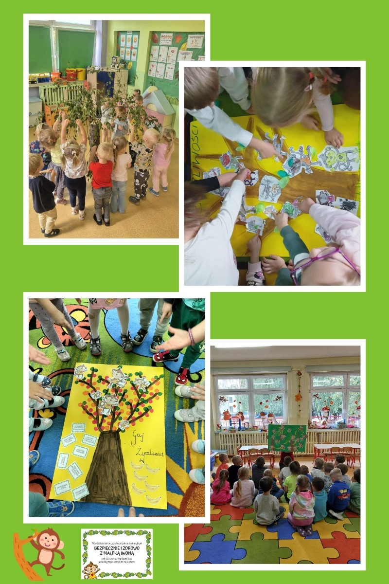 Rozmawialiśmy na temat życzliwości, przypomnieliśmy sobie magiczne słowa oraz rozważaliśmy różne alternatywy powitania i pożegnania z kolegą/koleżanką, ciocią/wujkiem, sąsiadem, starszą osobą. Odgrywaliśmy scenki tematyczne, a na koniec wykonaliśmy Gaj Życzliwości, w którym mieszka poznana małpka.