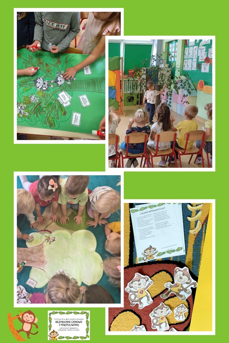 Przedszkolaki poznały małpkę Iwonę i wykonały zadanie wprowadzające w Ogólnopolskim Projekcie Edukacyjnym „Bezpiecznie i zdrowo z Małpką Iwoną”.