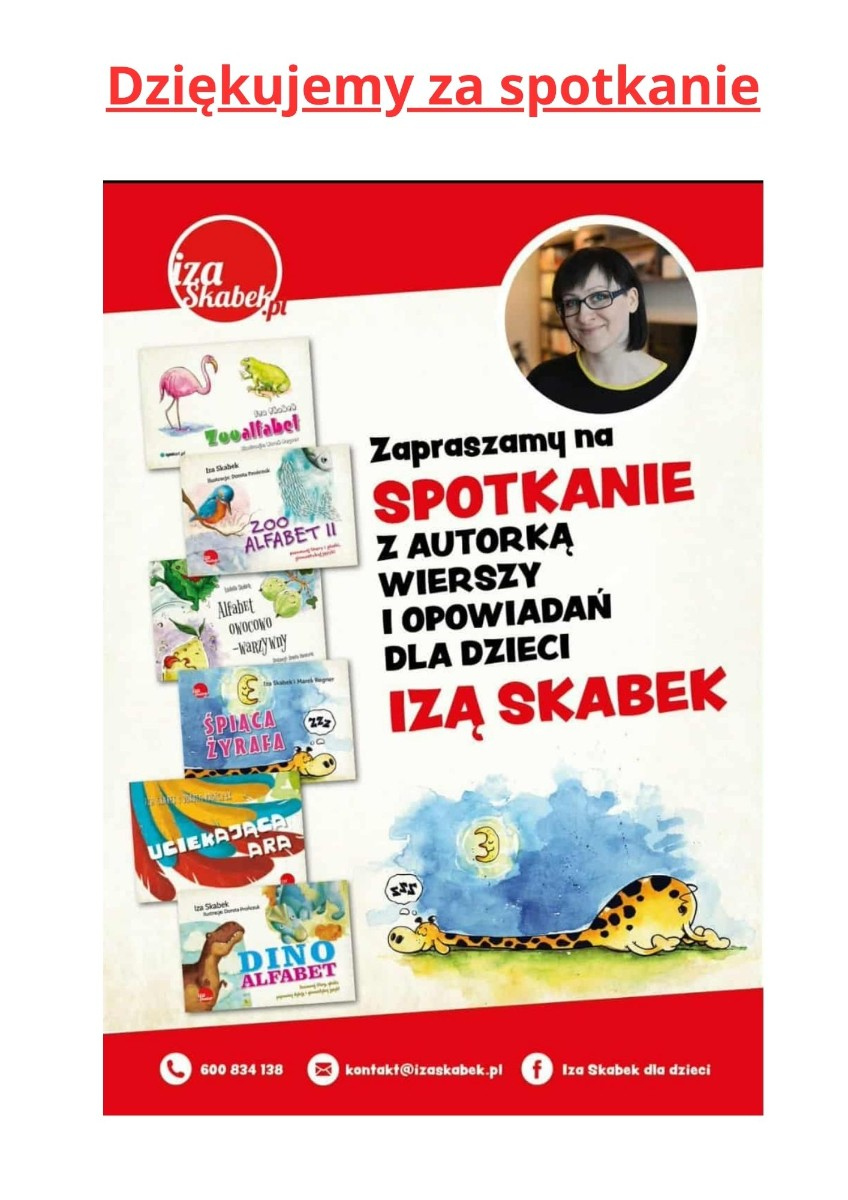 Spotkanie z autorką wierszy i opowiadań dla dzieci- panią Izą Skabek