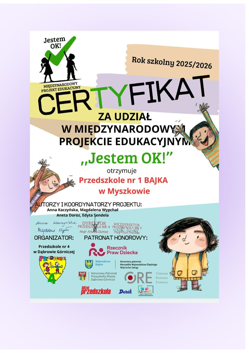 W naszym przedszkolu realizowaliśmy projekt „Jestem OK”,