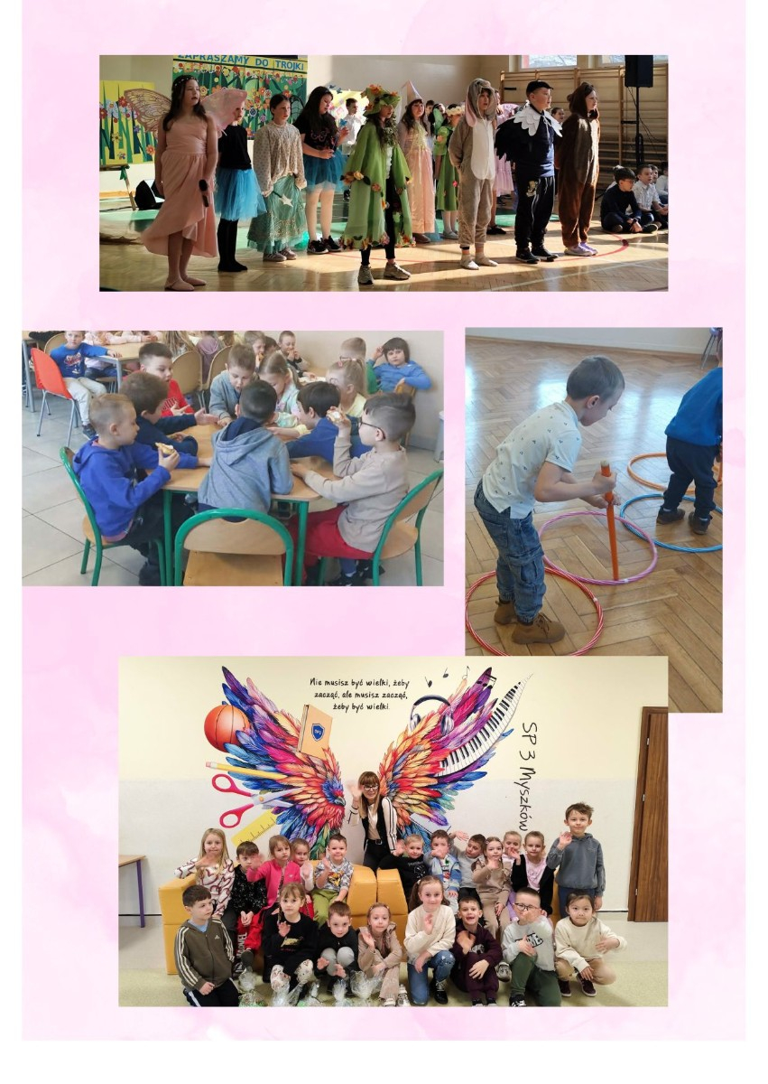 uczestniczyły w wyjściu do Szkoły Podstawowej Nr 3 im. Tadeusza Kościuszki w Myszkowie. Podczas wizyty obejrzały występ artystyczny przygotowany przez uczniów, miały okazję do wspólnego ruchu i zabawy. Na zakończenie czekał na nie poczęstunek, a każde dziecko otrzymało drobny upominek. Wyjście przebiegło w miłej i radosnej atmosferze.